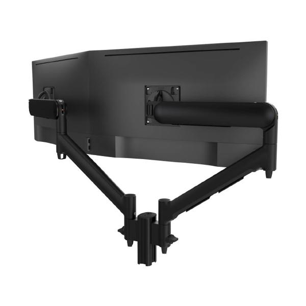 This desk mount has two dynamic arms attached to a small post. Each arm has smooth fingertip horizontal and vertical movement, plus tilt, pan, and rotation of monitors landscape-to-portrait. The monitor arms are spring-assisted and can be installed in any of the four post channels, and additional monitor arms can be added later. The spring-assisted arm design provides excellent ergonomic support and display adjustment from a seated position. Perfect for activity based workplaces, sit-to-stand workstations, and shared environments.