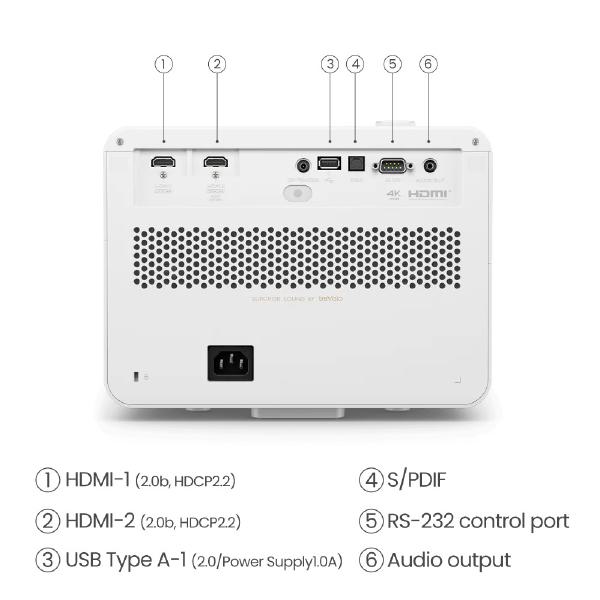 3300lm / 600,000:1 / HDMI. Immerse yourself in meticulously enhanced contrast and true-to-life colours within expansive game worlds. Experience more AAA open-world in-game detail and 4K HDR viewing for total immersion and heart-pounding, awe-inspiring realism. With HDR tone mapping and SSI Dynamic Black technology, simply adjust light intensity* and adapt brightness to the images, and intricate details emerge from the shadows. With 4LED high brightness, vibrant hues, and 100% of the DCI-P3 colour space, the X3100i is ready to get you enveloped in vivid cinematic colours of gaming universes. Sense every in-game shift through pinpoint sound placement, from explosive blasts to tranquil moments.