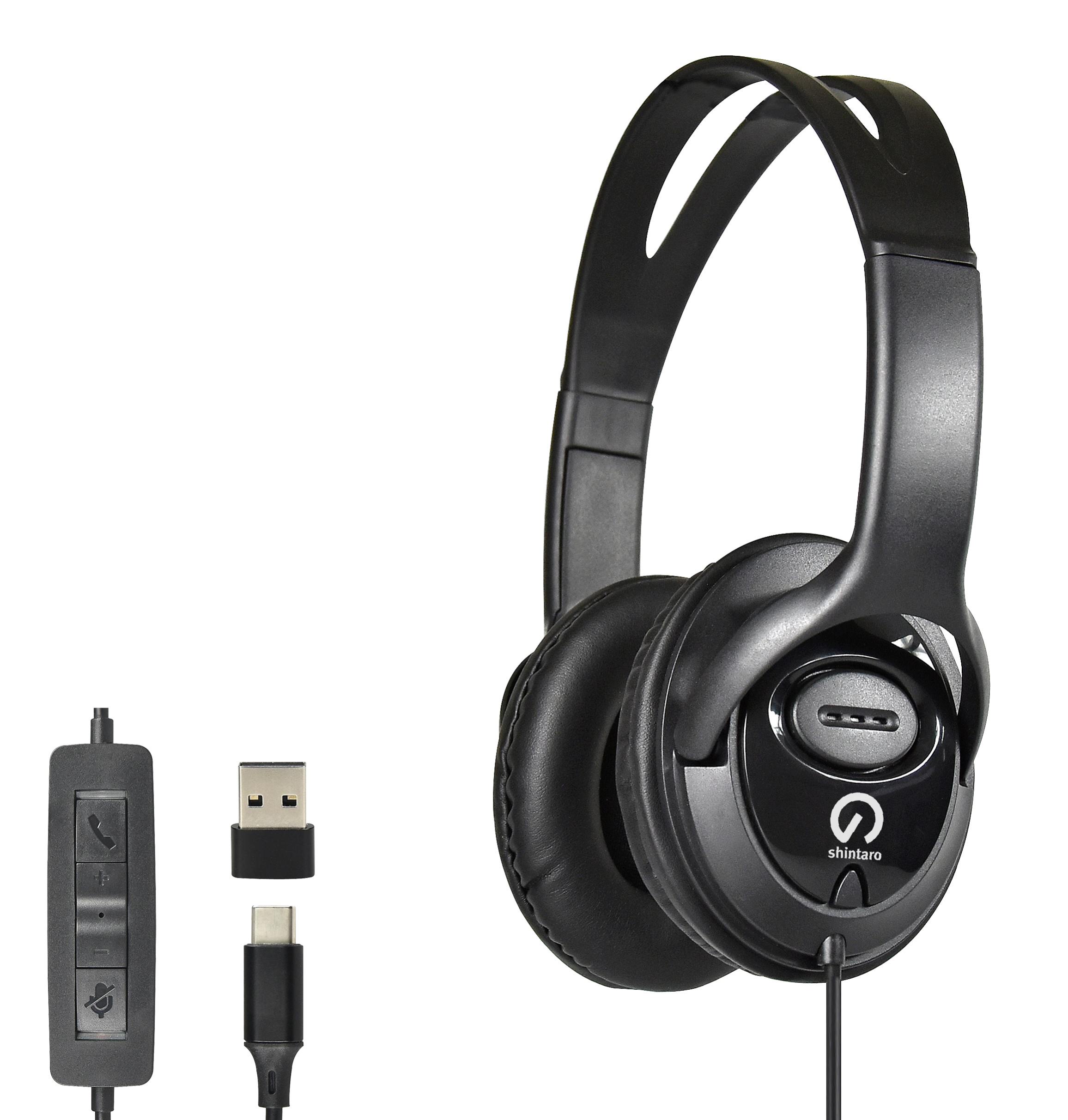 Experience superior sound quality with the Shintaro Over-The-Ears USB-C Headset, designed for use with the latest USB-C devices, including iPads, Chromebooks, and laptops. This headset features powerful 40mm speaker drivers for crystal-clear audio and an in-line microphone with volume control for hands-free calls. The durable, size-adjustable headband with stitched earpads ensures comfort during long listening sessions. With the included USB-C to USB-A adapter, you can easily connect to various devices. The 1.5m cable length offers flexibility, while the in-line controller provides easy access to call functions and microphone mute.