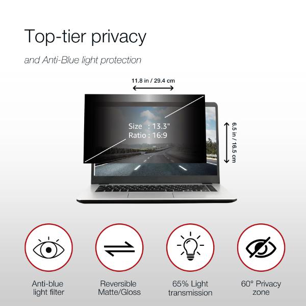Shintaro Privacy Screen Filter 13.3″ for Laptop with Adhesive Strips, 16:9, Anti-glare & Blue Light Filter (SH-133W9H)