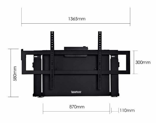 TouchBoard Wall Mounted Height Adjustable Motorised Twin Column Lift System. VESA to 1200 x 600mm. Supports panels up to 136kg. Black. (TBMS-WALL-HA-C)