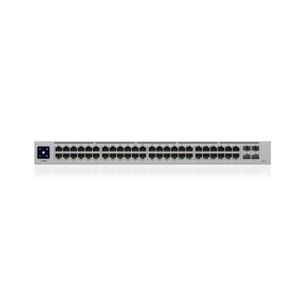 The USW-48-PoE is a configurable Gigabit Layer 2 switch with 48 Gigabit Ethernet ports including 32 auto-sensing 802.3at PoE+ ports, and 4 SFP ports. It provides Gigabit PoE links to your RJ45 Ethernet devices and Gigabit fiber uplink options to your enterprise network. The USW-48-PoE features a 1.3? touch LCM to provide status Managed and configured by the UniFi Network Controller with UniFi mobile app support, the USW-48-PoE offers an extensive suite of advanced Layer 2 switching protocols and features, including operation mode (switching, mirroring, or aggregate) per port.